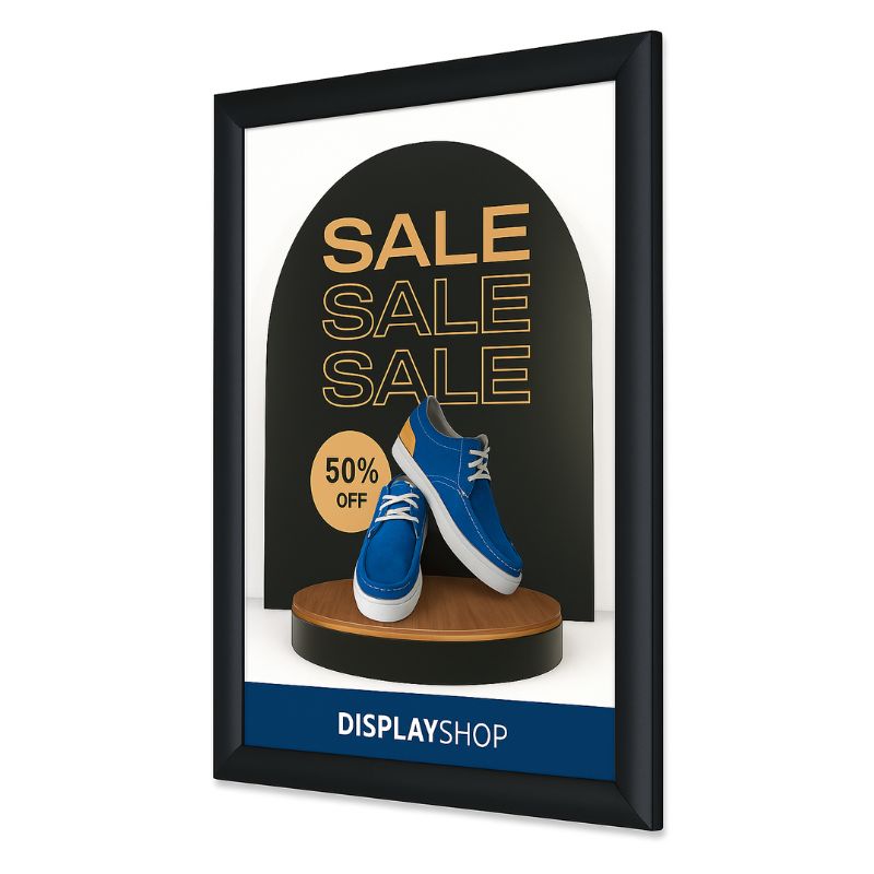 Le cadre clic-clac Nova 25mm Noir est équipé d'un cadre de 25 mm de large. Ce système de clip rend le cadre idéal si vous souhaitez souvent afficher de nouvelles affiches. Le cadre s'ouvre et se ferme facilement d'un simple clic.